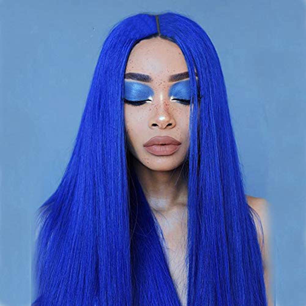 Straight blue wig clearance, Elesty Blue Lace Front Wig Middle Part clearance