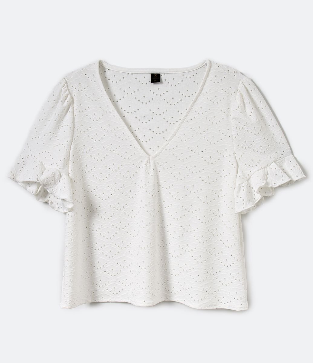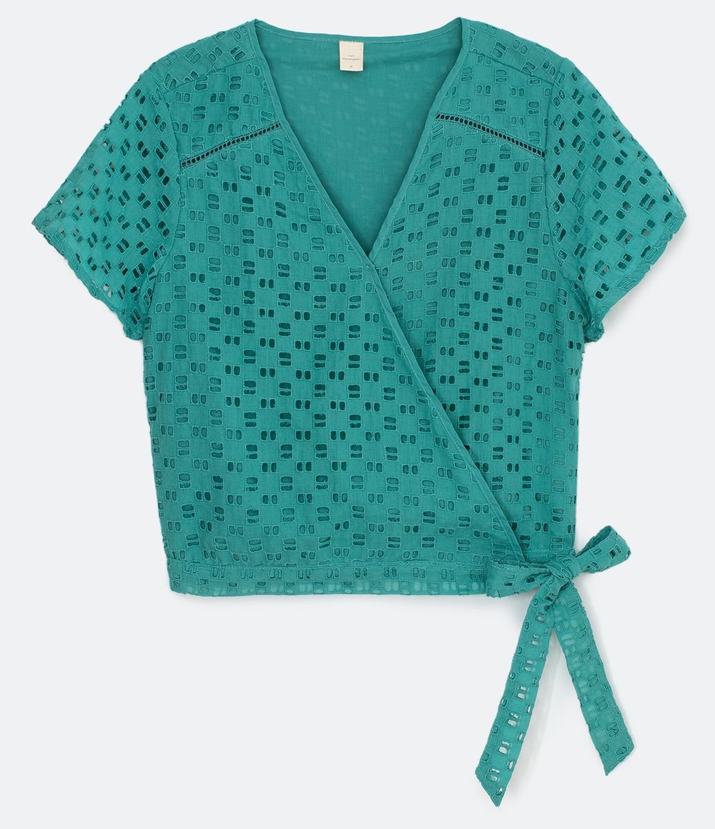 Blusa laise renner clearance, Blusa Manga Curta em Laise com Decote V Transpassado Verde clearance