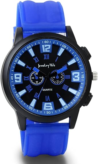 Montre de couleur homme clearance, JewelryWe Montre Homme Quartz Analogique Sport Bracelet Gel de Silice Plastique Fantaisie Couleur Bleu Longueur 27cm avec Sac Cadeau: Amazon.fr: Montres clearance
