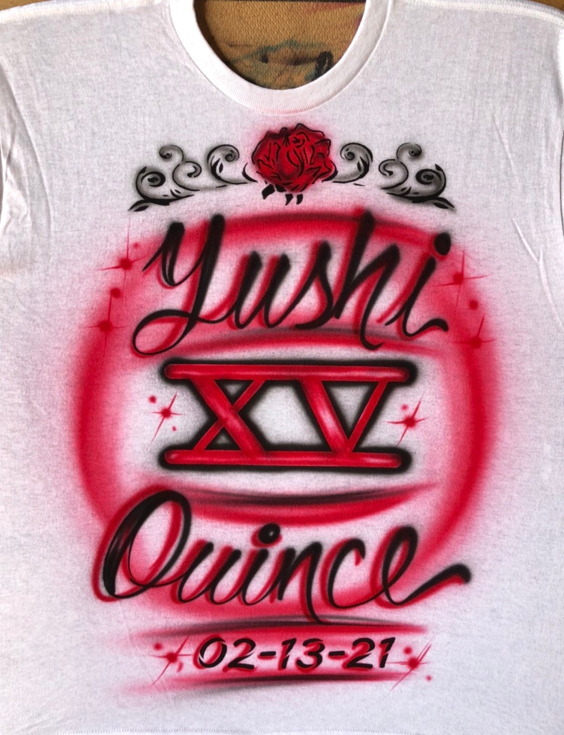 Airbrush quince shirts clearance, Airbrush Red Birthday T-shirt clearance