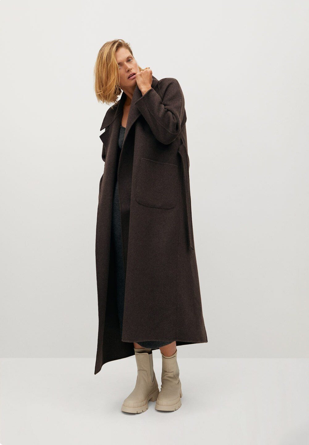 Manteau marron mango clearance, MANGO Manteau Marlon en laine mélangée avec ceinture à nouer • de Bijenkorf clearance