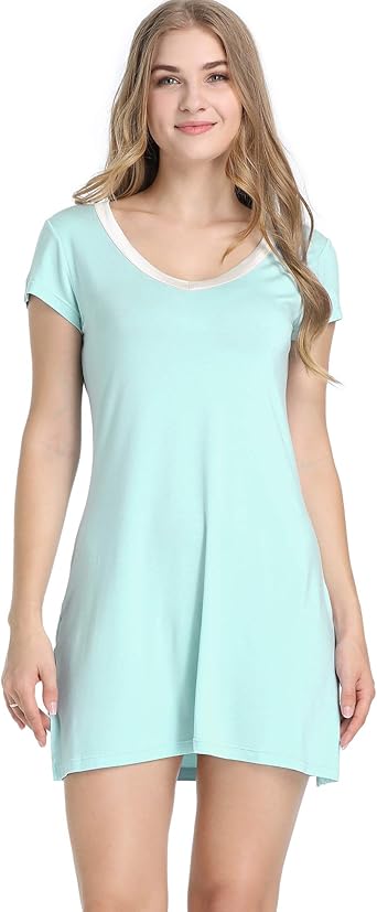 Camisas para dormir mujer clearance, Amazon.com: Camisa para mujer, de bambú, para dormir, noche, pijama, pijama, manga corta, cuello en V, M: Clothing clearance