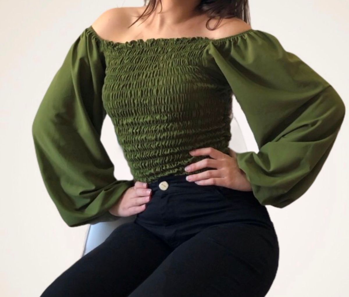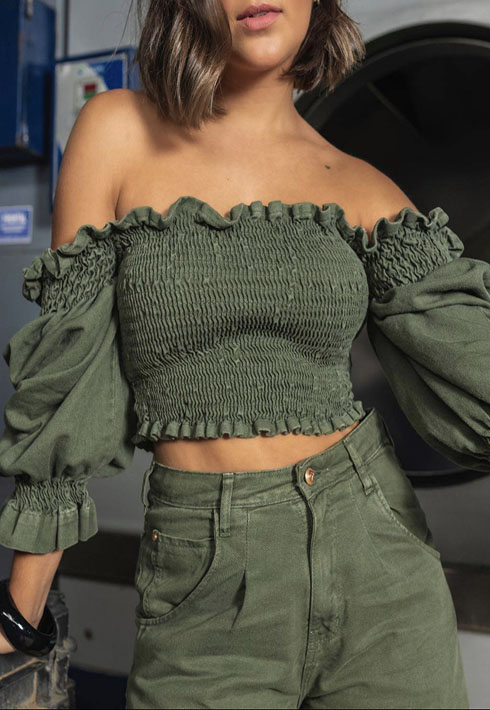 Blusa lastex verde clearance