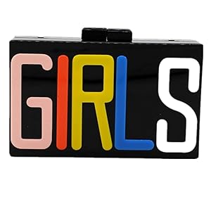 Purse that says girls clearance, iBella Women's Rectangular Acrylic Lucite Girls Evening Bag Party Clutch Handbag, Black clearance