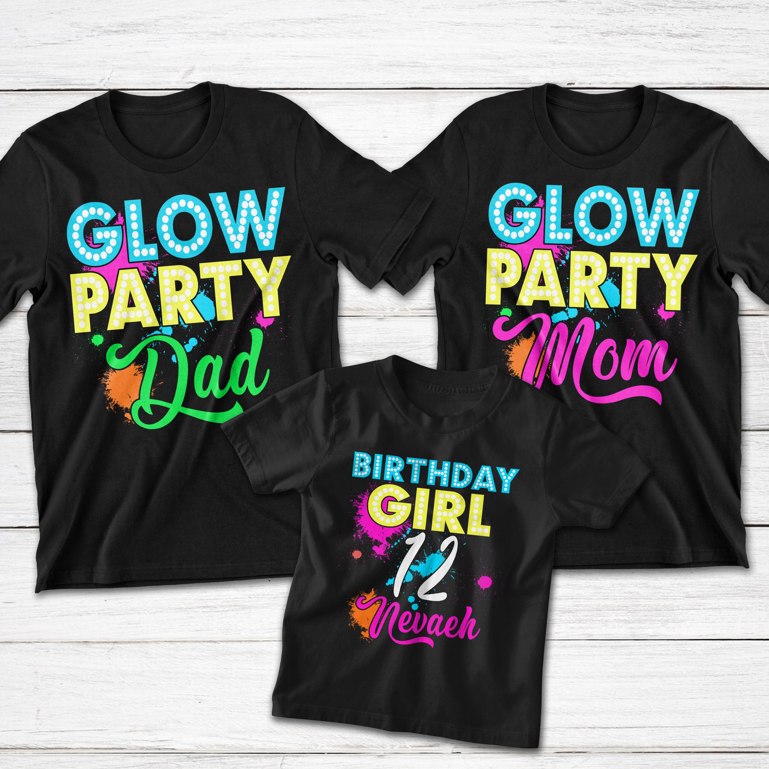 Glow party birthday shirts clearance