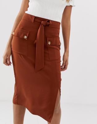 Jupe marron chocolat clearance, Lipsy - Jupe mi-longue fonctionnelle - Marron chocolat | ASOS clearance
