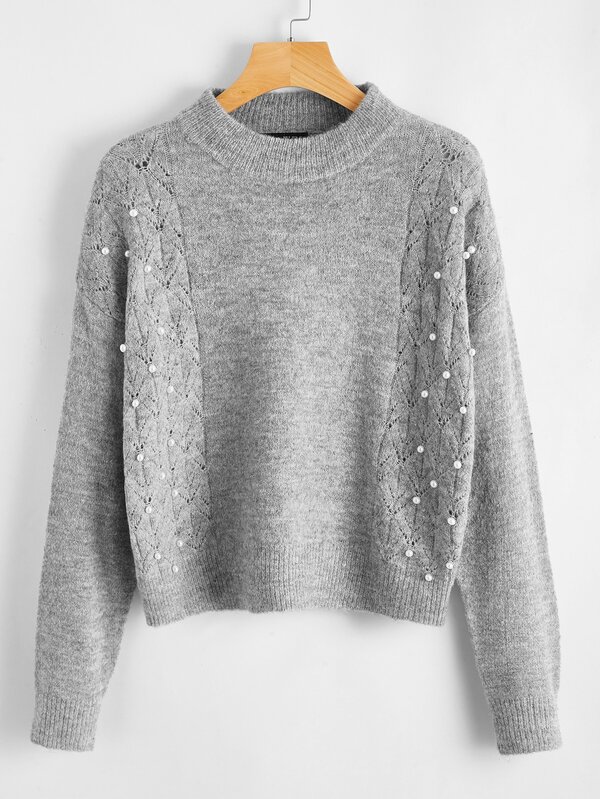 Pull gris avec perles clearance