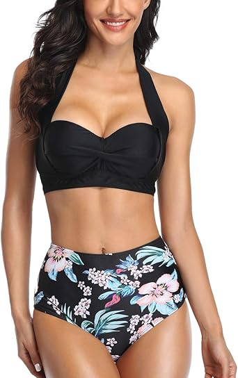 Traje de baño en dos piezas clearance, Amazon.com: Ziola Mujeres de cintura alta bikini halter fruncido trajes de baño dos piezas vintage traje de baño : Ropa, Zapatos y Joyería clearance