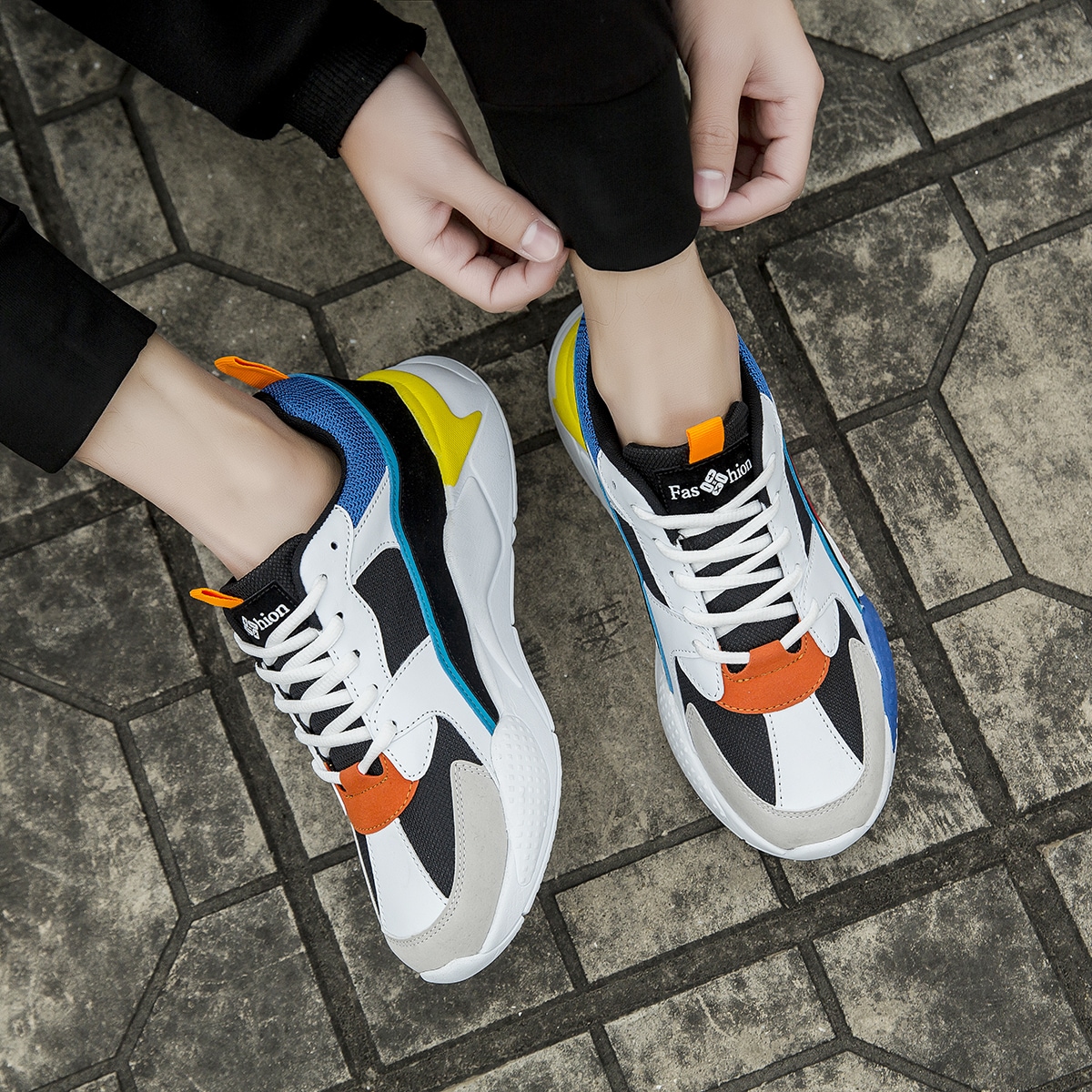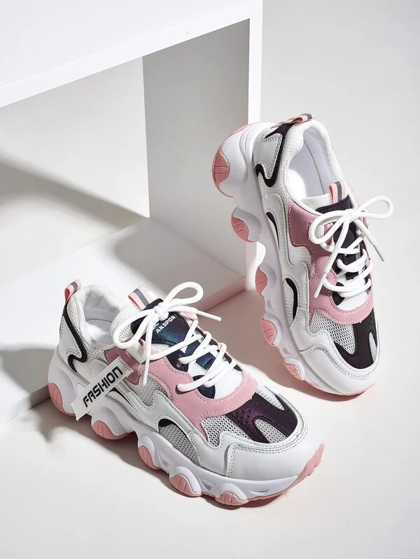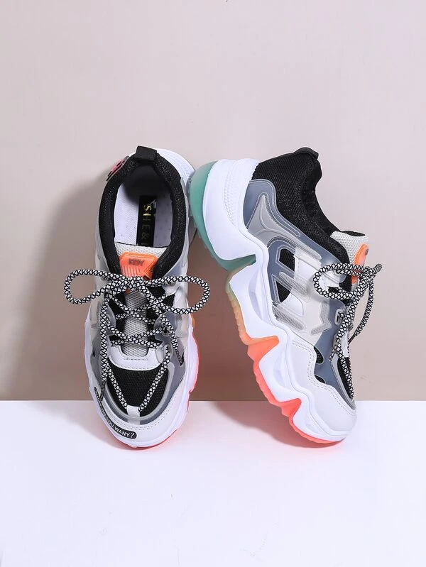 Zapatillas deportivas con cordon delantero clearance, Zapatillas deportivas gruesas de color combinado con cordón delantero | ROMWE clearance