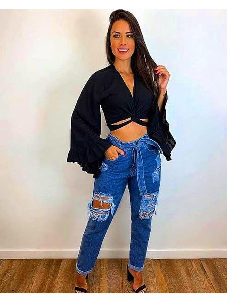 Manga flare 2020 clearance, Blusa Manga Flare com Calça Boca de Sino Destroyed | Patrícia Camargo clearance