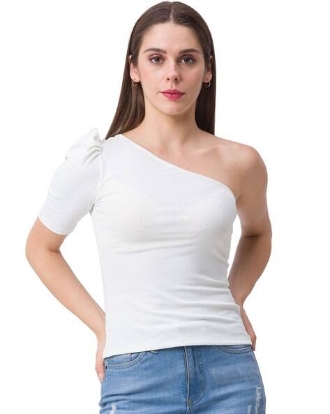 - One shoulder white shirt sale online