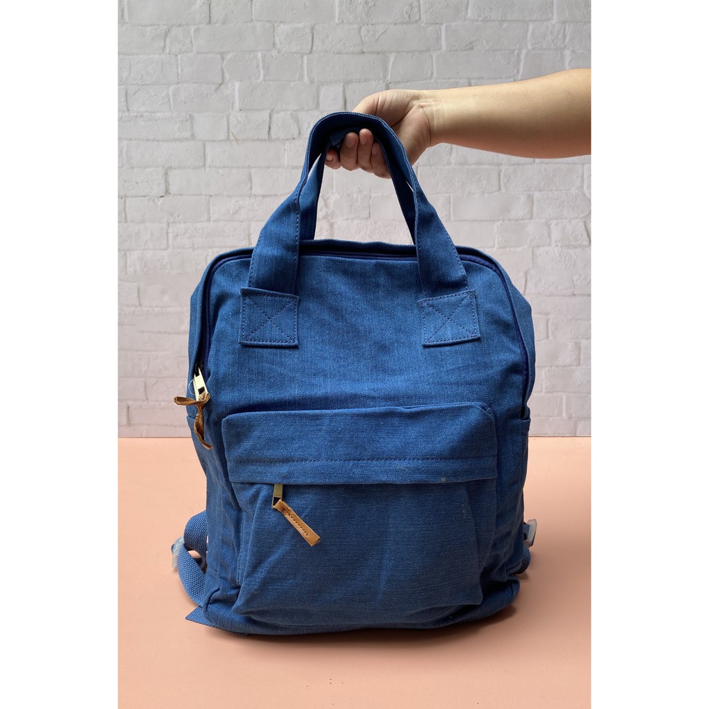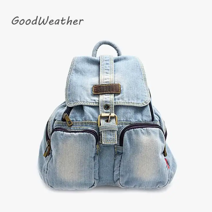 Blue denim backpack clearance