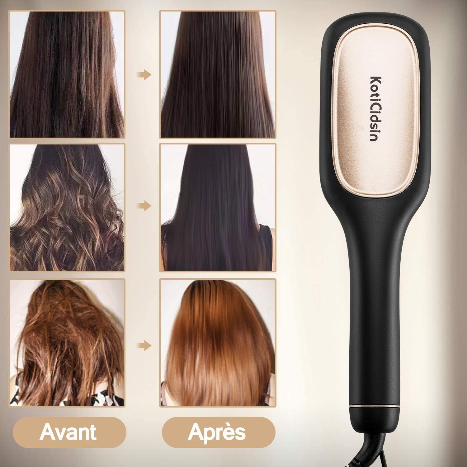 Koticidsin brosse lissante clearance, KotiCidsin Brosse Lissante, Affichage LED+Peigne à Cheveux de la Température Réglable, Brosse Chauffante Ionique+anti-échaudage+Ferm (Noir): Amazon.fr: HygiÚne et Soins du corps clearance