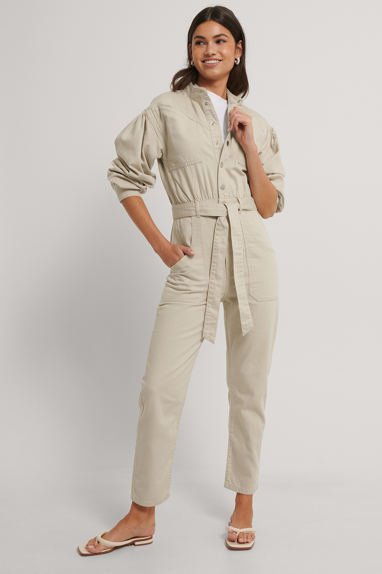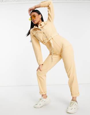 Combinaison jean beige clearance, Combinaison Pantalon En Jean Coloré Beige | na-kd.fr clearance