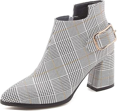 Bottines a carreaux femme clearance, Aisun Femme Rétro Carreaux Tige Courte à Talon Chunky Bottines: Amazon.fr: Chaussures et Sacs clearance