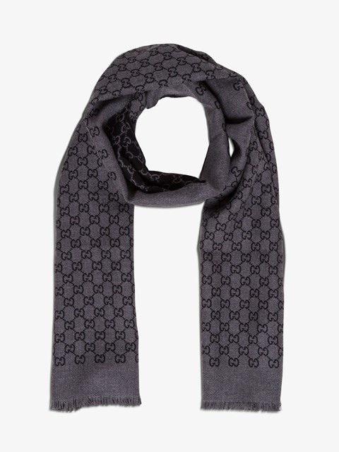 Gg wool scarf clearance, Double Jacquard GG Wool Scarf Grey clearance