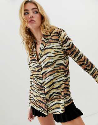 - Tiger print satin shirt clearance