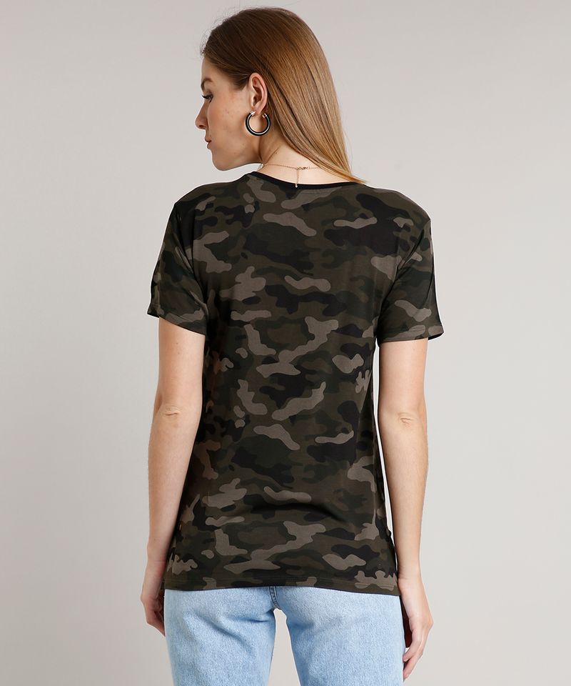 Camisa camuflada feminina c&a clearance, Blusa Feminina Mulher Maravilha Estampada Camuflada Manga Curta Decote Redondo Verde Militar clearance