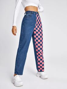Jean damier bleu clearance, Jean mom imprimé • Jennyfer clearance