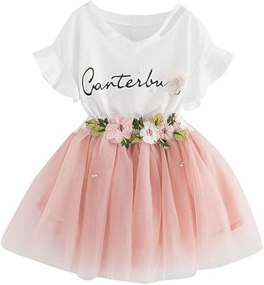 Tenue fille ete clearance, IMJONO Robe Princesse Fille, Été Robe Enfant en Bas âge Enfants Bébé Filles Tenue Vêtements Impression Coton T-Shirt Tops + Jupe Tutu Fleurs 1 Set Fille Enfant Ensemble 3-7 Ans: Amazon.fr: Vêtements clearance