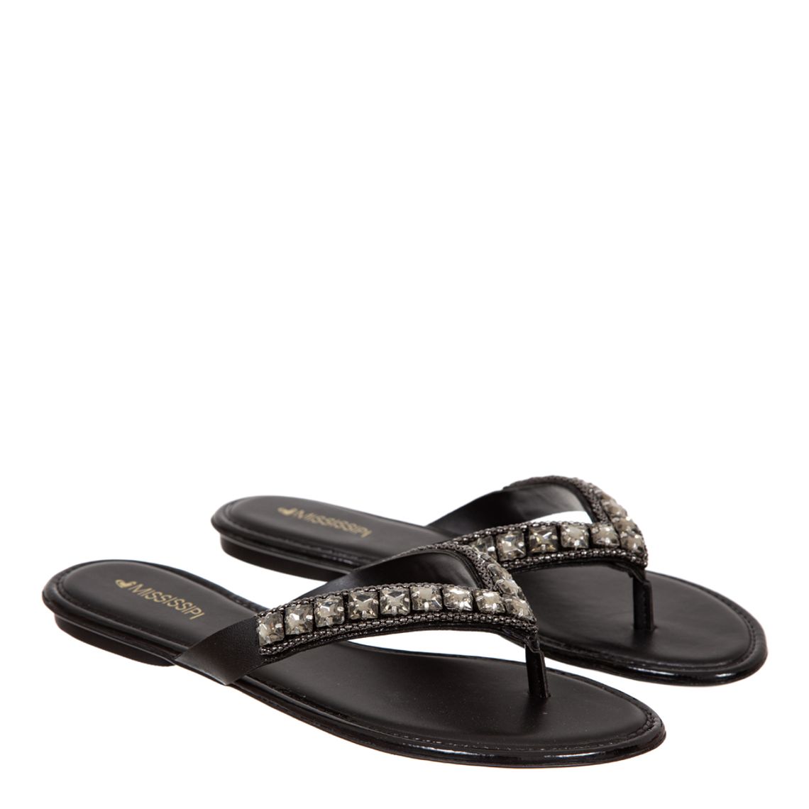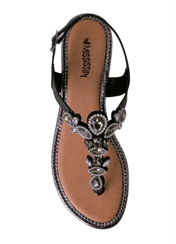 Rasteira mississipi pedraria preta clearance, Rasteira Mississipi Preta com Pedrarias - Multimarcas clearance