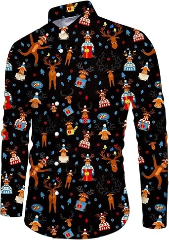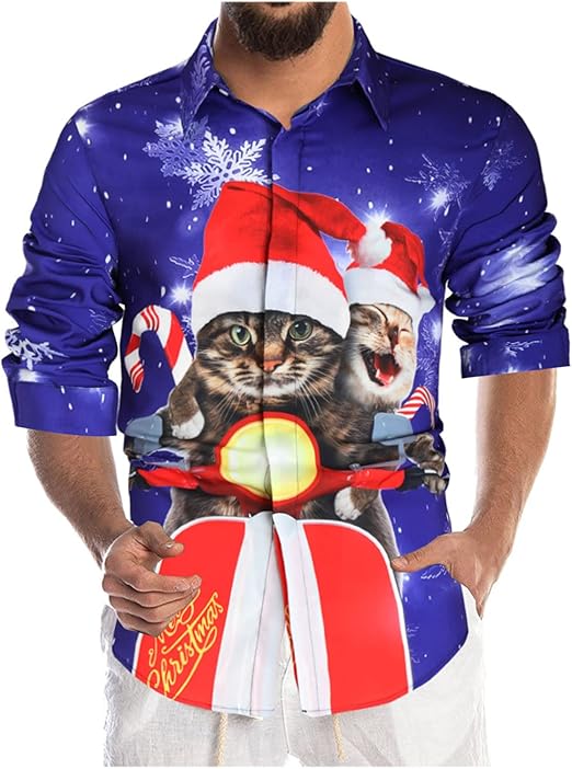 Ugly christmas button up shirt clearance, Hawaiian Shirt 3D Digital Printing clearance
