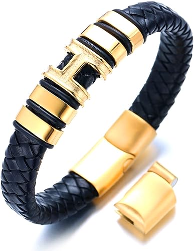 Bracelet garçon 6 ans clearance, Garçon 18-19.5cm Halukakah Enfants ○ Solo Junior ○ Garçon Bracelet Cuir Véritable de Main Noir 6-12+3 Ans Chaîne Argent Titane Acier Fermoir Magnétique Taille Ajustable 7-7.7 avec Le Boîte-Cadeau Gratuit Bijoux groupisd.com clearance