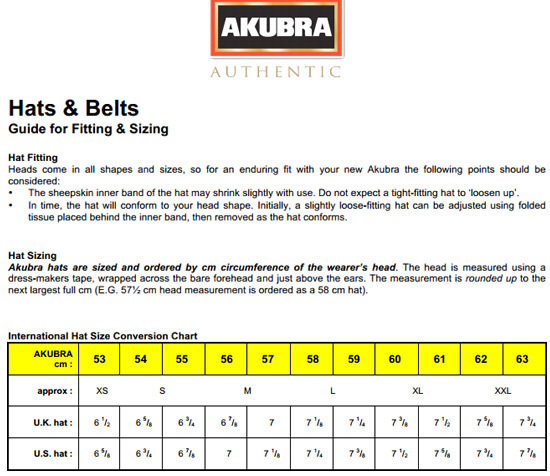 Akubra hat sizes clearance, Sizing Chart clearance