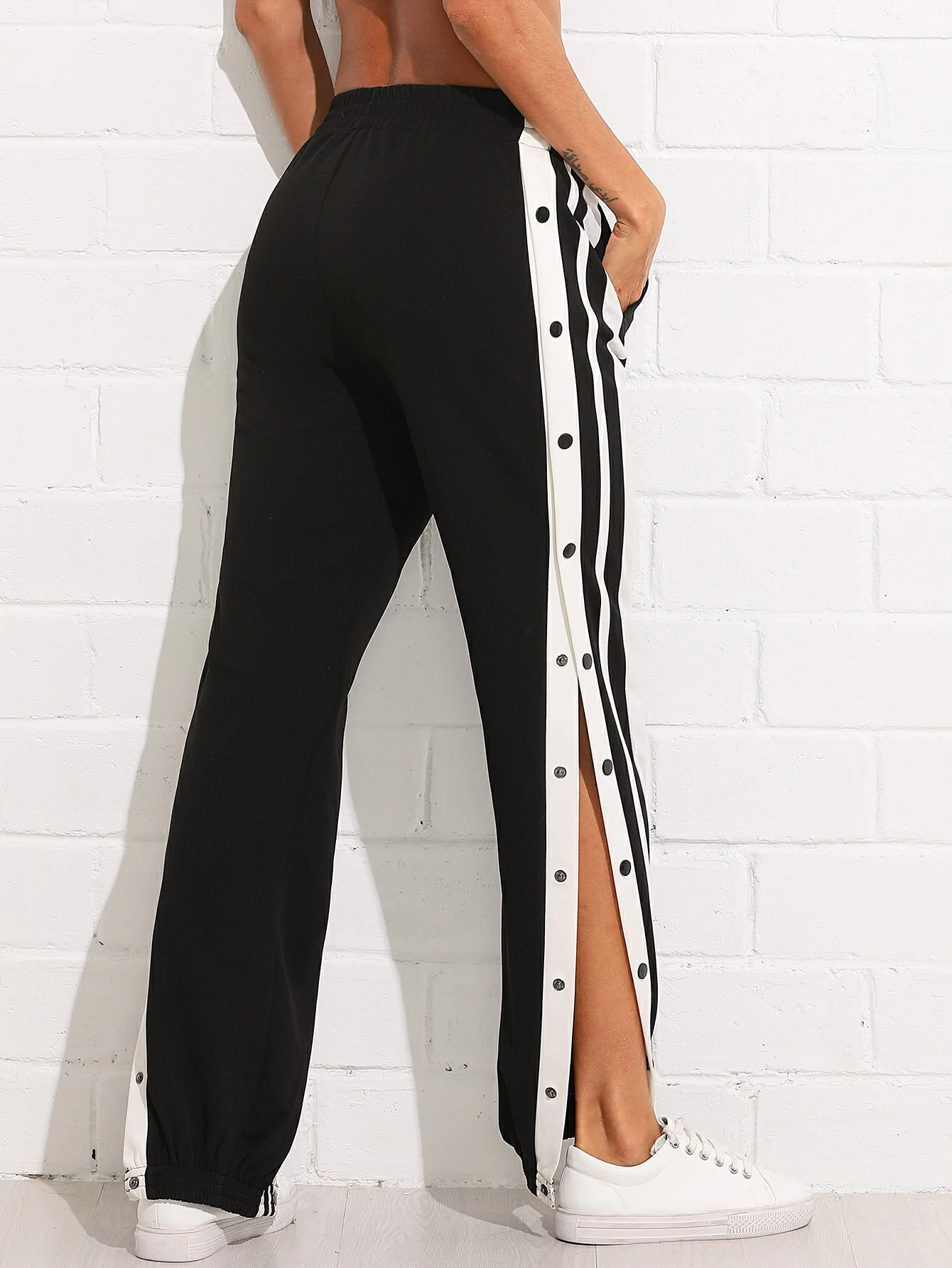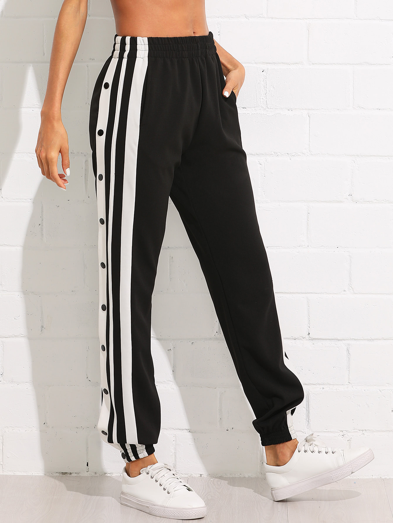 Product Name: Pantalones de rayas laterales con botón de presión clearance