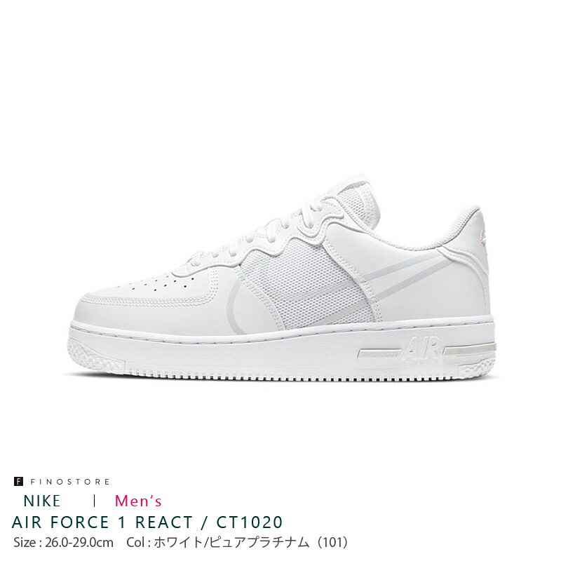 Air force 1 sh clearance, 楽天市場】【あす楽】ナイキ エアフォース 1 リアクト(NIKE AIR FORCE 1 REACT)CT1020 101 スニーカー メンズ エアフォース ワン:Fino store clearance