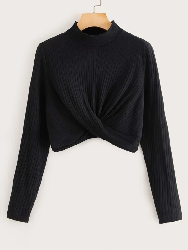 Shein top manche longue clearance, Top côtelé avec nœud | Mode en ligne | SHEIN FRANCE clearance
