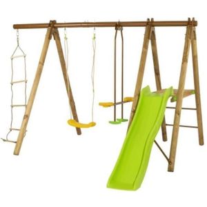 Portique bébé bois pas cher clearance, Station bois Arum, portique pas cher avec balançoire, siège bébé, vis-à-vis et plateforme avec toboggan clearance