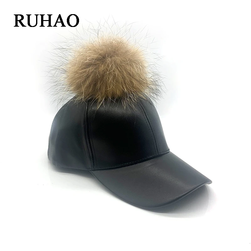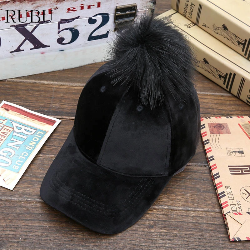 Fur ball baseball cap clearance, Winter hat lady fur ball baseball cap clearance