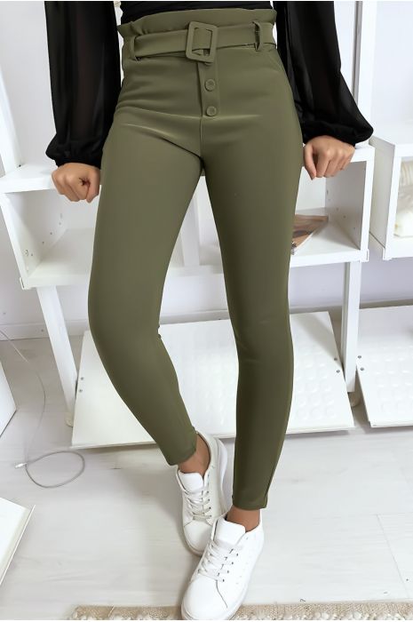 - Pantalon taille haute kaki free shipping