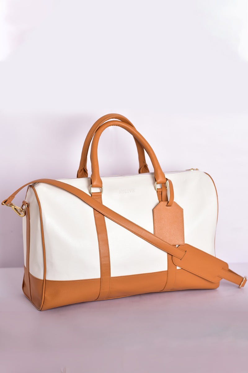 - Shopping White luggage with leather trim