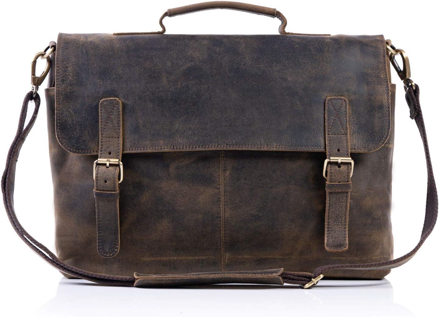 - Komalc 15 inch retro buffalo hunter leather laptop messenger bag