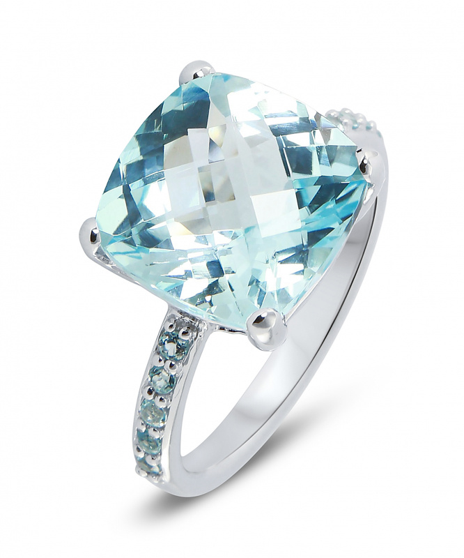 Bague topaze clearance, Bague de cocktail topaze bleue de Londres taille coussin en or blanc 14 carats (11 x 9 mm) | Blue Nile clearance