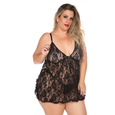 Camisolas de renda plus size clearance, Camisola Plus Size em Microfibra e Renda com Tanga - EK5028 clearance