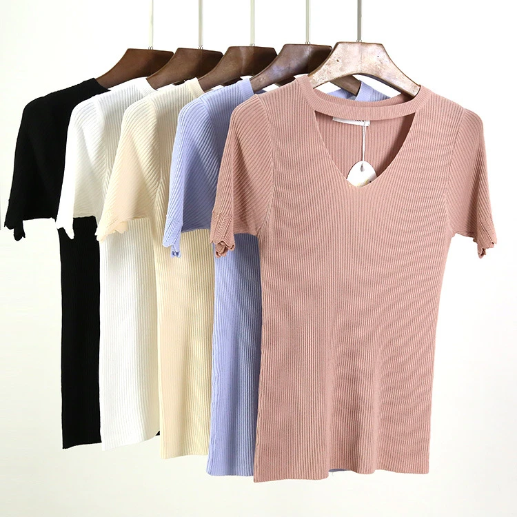 Pull femme ete clearance, Ice soie été à manches courtes tricoté chemise femmes pull pull pull découpé col en V Chunky Choker chandails pull femme 1612 | AliExpress clearance