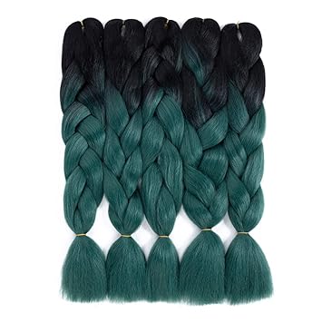Green kanekalon braiding hair clearance, Ombre Braiding Hair Black-Dark Green clearance