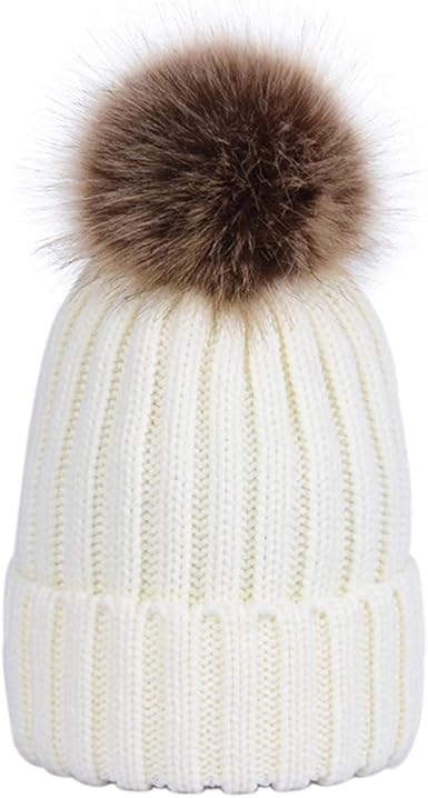 Bonnet avec pompon bebe clearance, Bonnet pompon fourrure mère fille maman bébé - Tout Comme Maman clearance