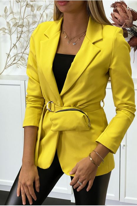 Blazer jaune femme clearance, Blazer jaune avec ceinture et pochette. Mode femme tendance clearance