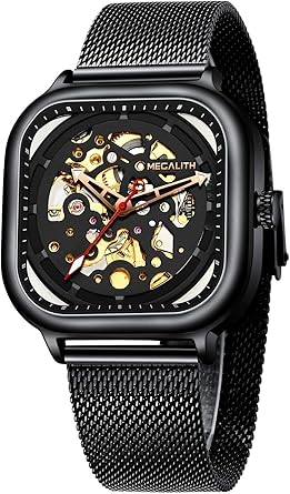 Montre squelette rectangulaire homme clearance, Montre Homme Montres Bracelets Etanche Militaire Mecanique Automatique Squelette Rectangulaire Noir Acier Inoxydable Montre en Maille Bleu Design Analogique Mode: Amazon.fr: Montres clearance
