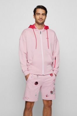 Pink boss sweatshirt clearance, BOSS - Relaxed-fit hoodie in French clearance