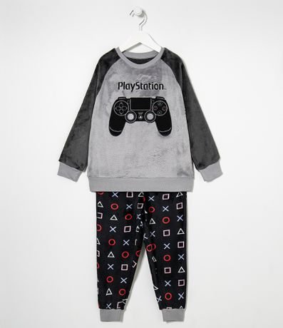 Renner pijama menino clearance, Pijama Infantil em Fleece Estampa Controle de Game - Tam 5 a 14 anos Cinza - Renner clearance