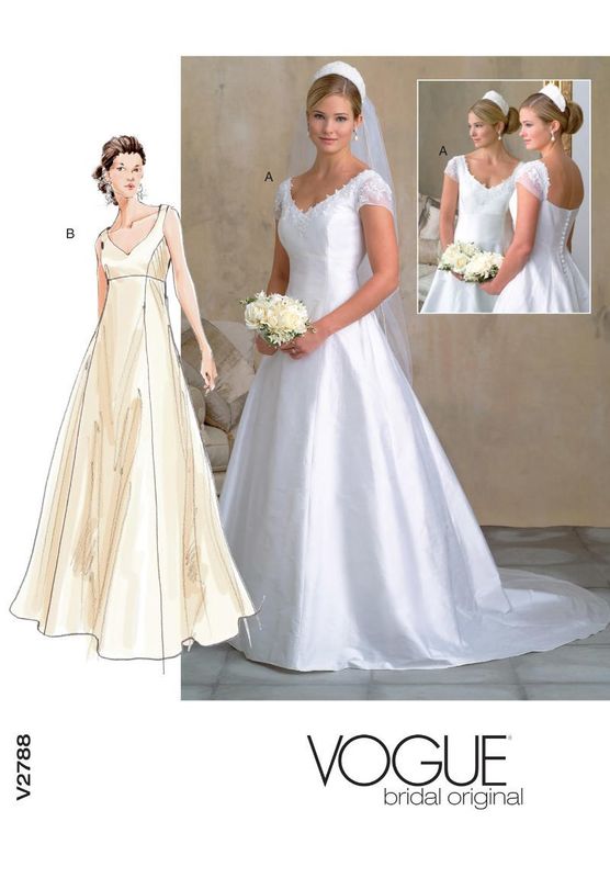 Patron robe mariée clearance, Patron Vogue 1032 Robe de mariée Empire avec traîne clearance