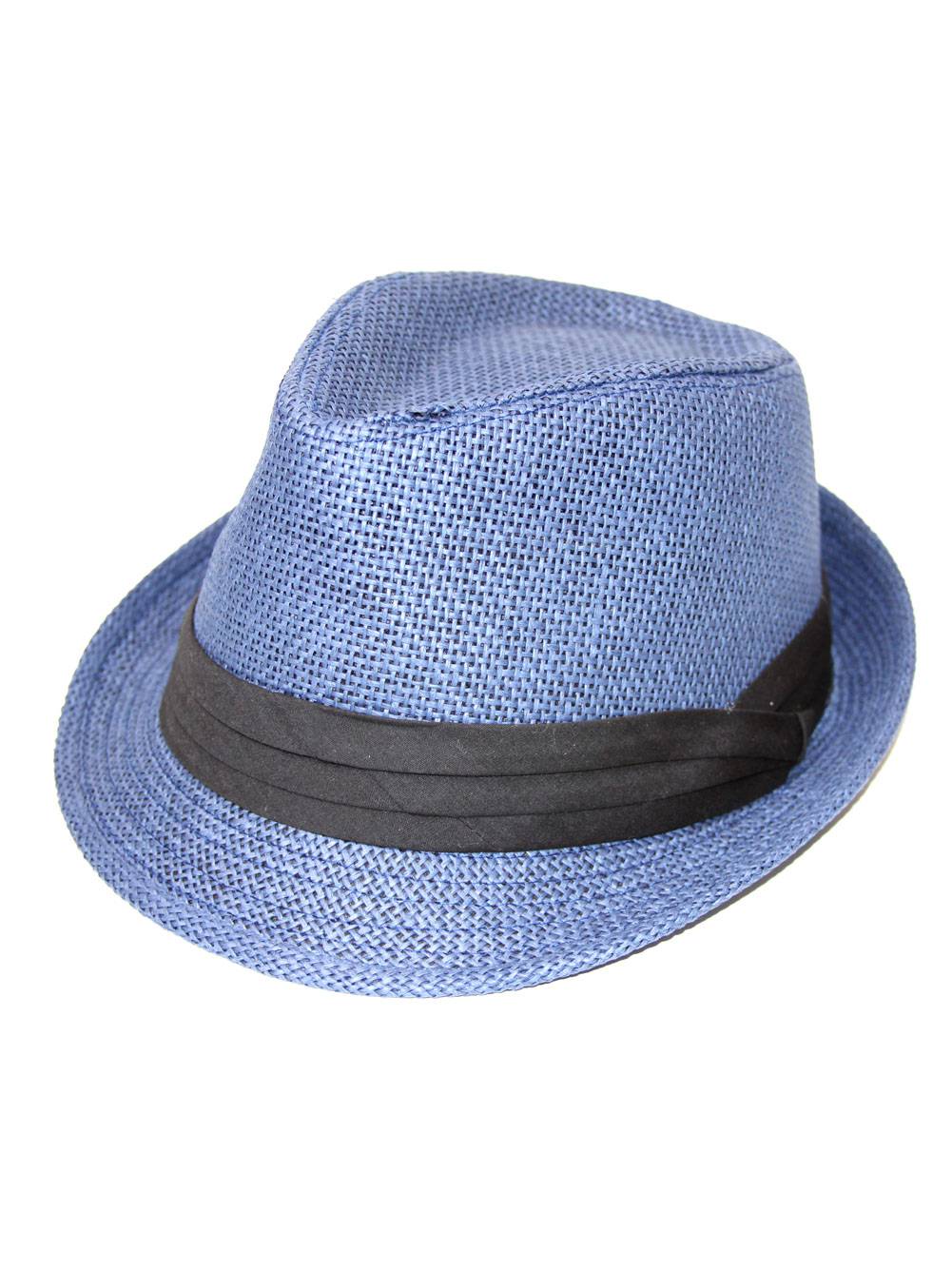 Blue straw fedora hat clearance