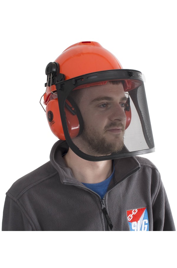 Ear defenders and visor clearance, JSP Orange \u0026 black Forestry helmet with clearance