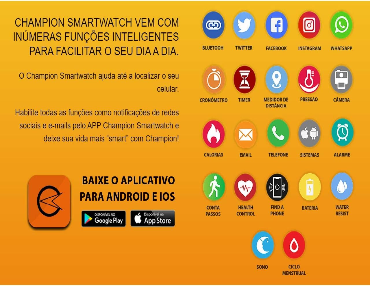Relogio champion funcoes clearance, Relógio CHAMPION Smartwatch CH50006C clearance