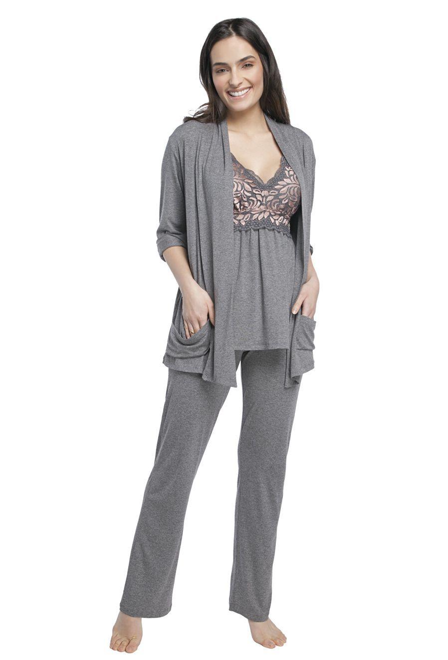 Pijama 3 peças maternidade clearance, Pijama maternidade 3 peças 60748 - Pijama 3 peças Maternidade - ARTRENDA clearance